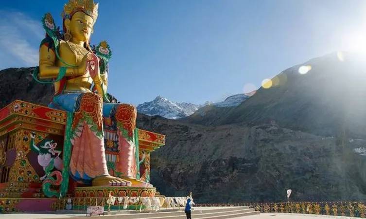 Perched at an altitude of 3,144 m, the Diskit Gompa is the largest surviving monastery in the Nubra Valley in Leh. Belonging to the Gelugpa sect of Tibetan Buddhism, this monastery is settled along the slope of a mountain. It overlooks the pristine snow-capped Himalayan peaks and the stunning flood plains of the Shyok River that present a remarkable sight to behold.